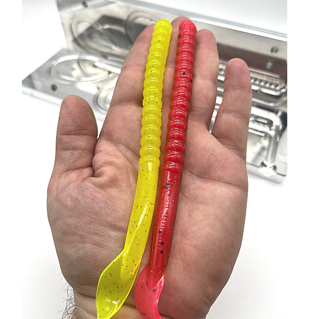 This is a large 12.5" Long (Hanging) worm with a .475" wide body. This mold very long and is 3 7/8" wide x 13 1/2" lg.