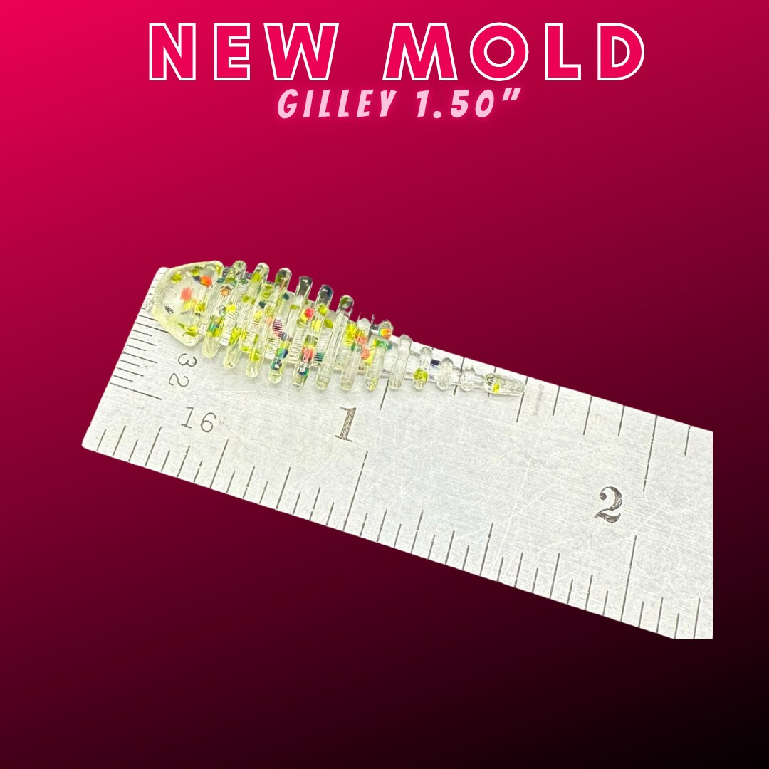 It pairs beautifully with micro ball head jigs, but it’s versatile enough for use on a drop shot or other light-tackle finesse presentations. And just like its bigger brother, peeling the Gilley 1.50” from the mold is always satisfying.