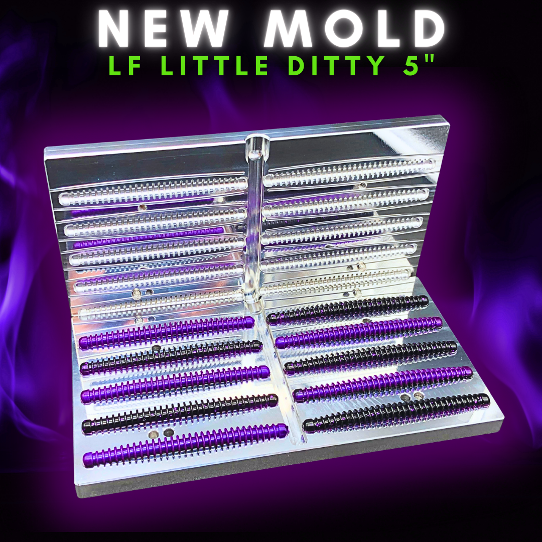 Step up your soft plastic production with the LF Little Ditty 5" — a precision CNC-machined mold built for bait makers who demand consistent, professional results.