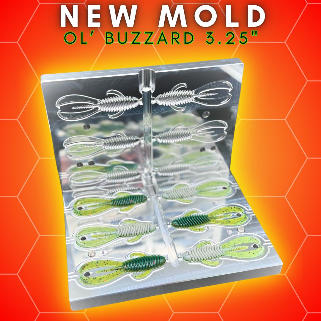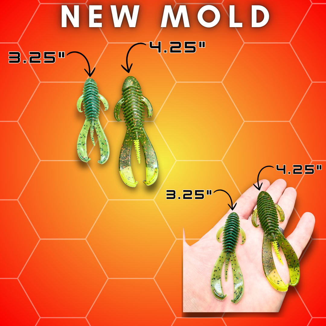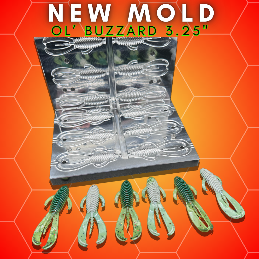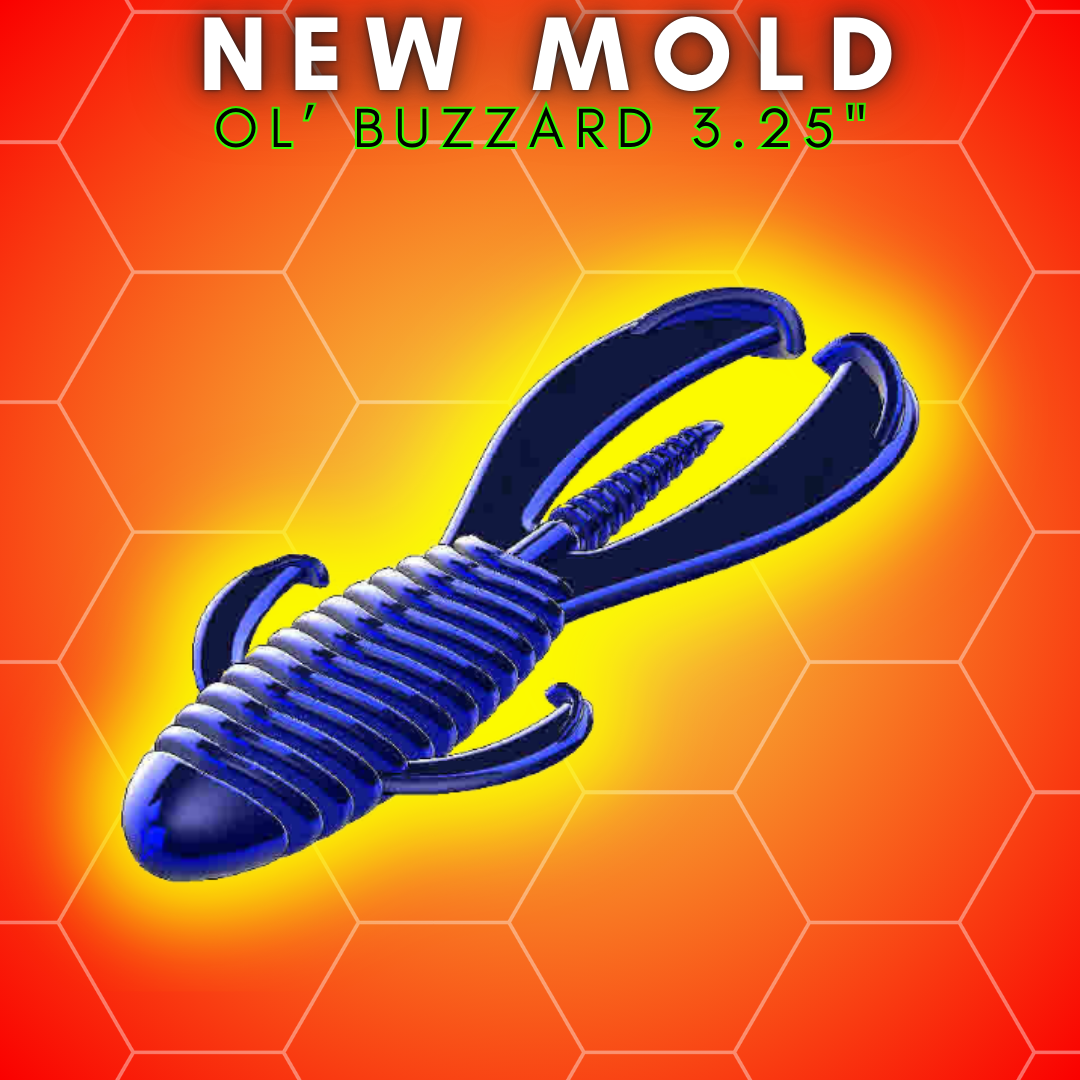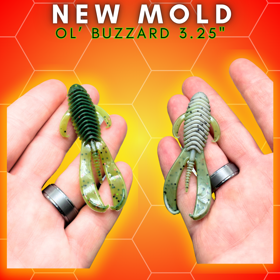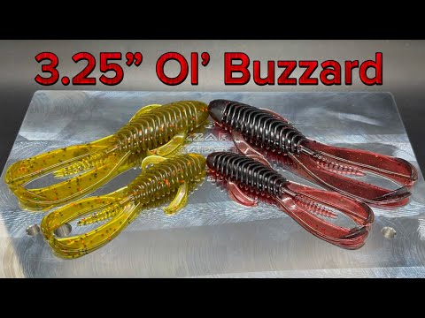 The body is ribbed for maximum water displacement and the tail great motion through the water!  The side arms/legs have a subtle movement to give the bait more realism and action.  At 3.25" inches in length, the Ol' Buzzard 3.25" is an ideal size for targeting medium to large Largemouth and Smallmouth Bass. The bait's lifelike appearance and natural, realistic action make it highly effective in a range of fishing scenarios, especially when fishing in areas where crawfish & frogs are present.